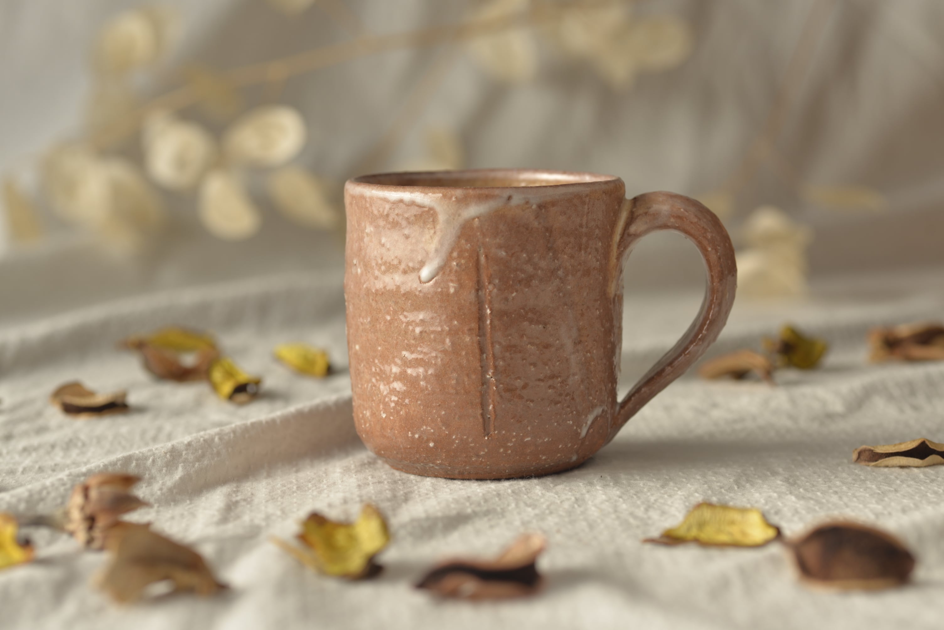 カップの下部には、陶工の指跡が残っています。これは、カップを釉薬の入った容器にドボンと浸けた時のものです。