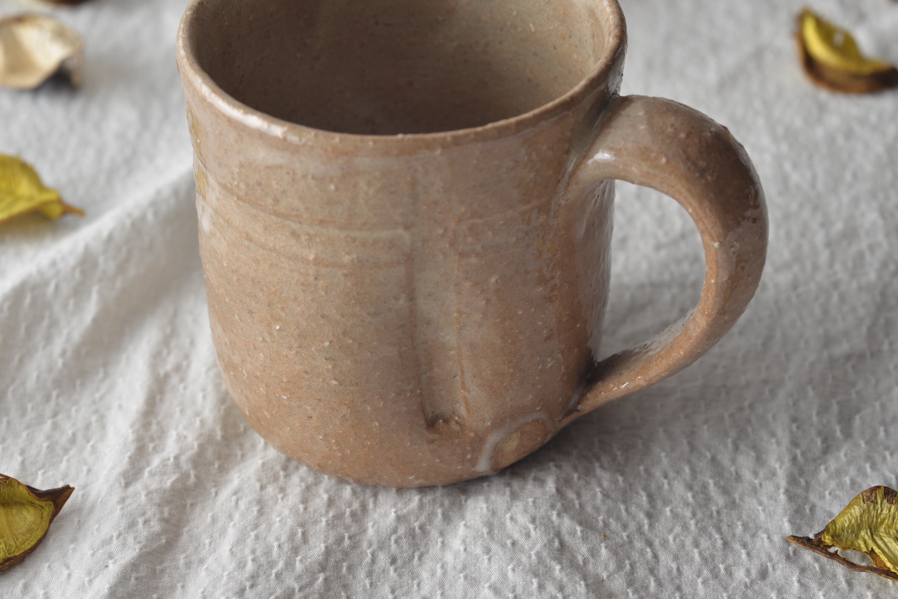 カップの下部には、陶工の指跡が残っています。これは、カップを釉薬の入った容器にドボンと浸けた時のものです。