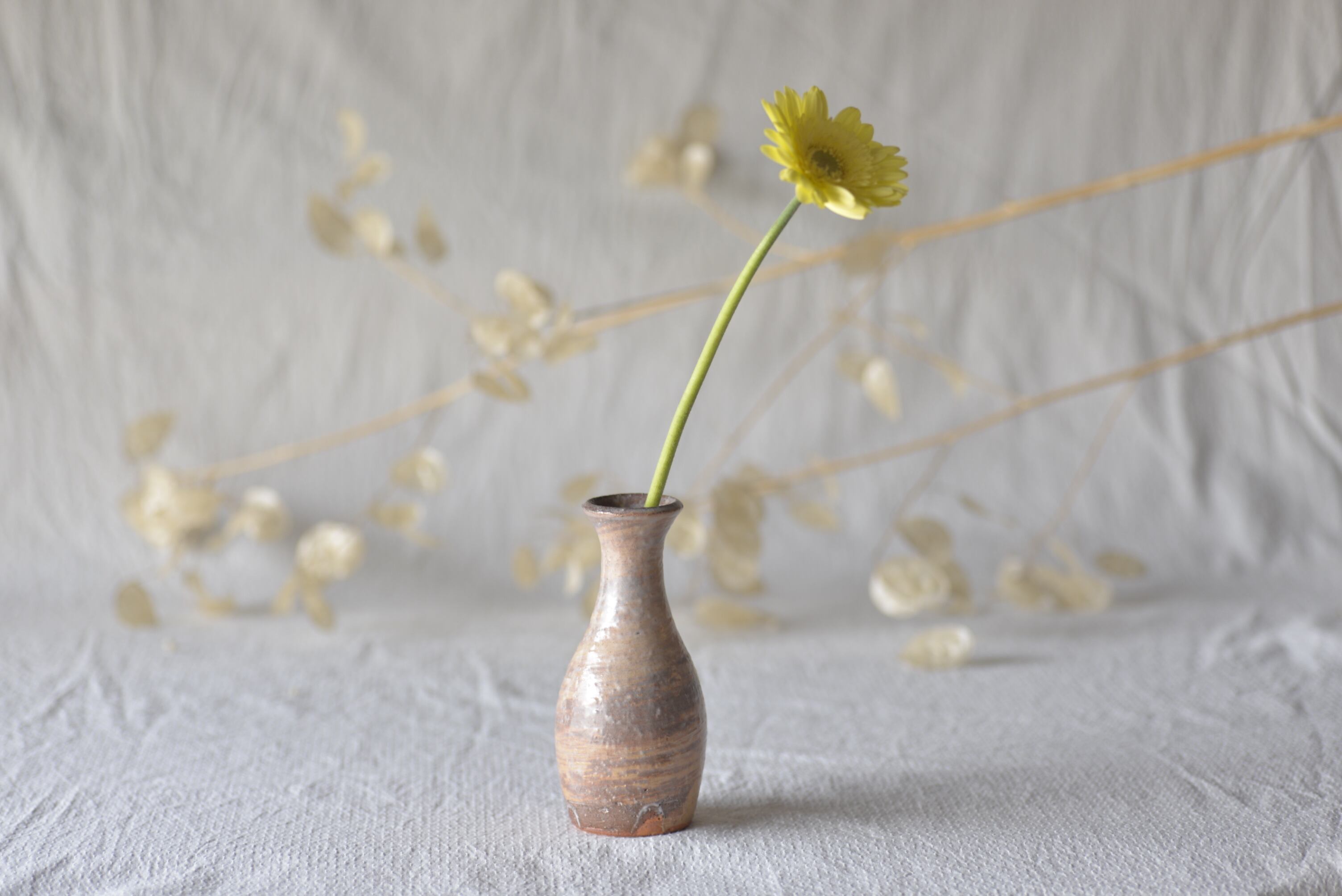 シンプルな鶴首の花入です。全体に刷毛目の模様を入れました。