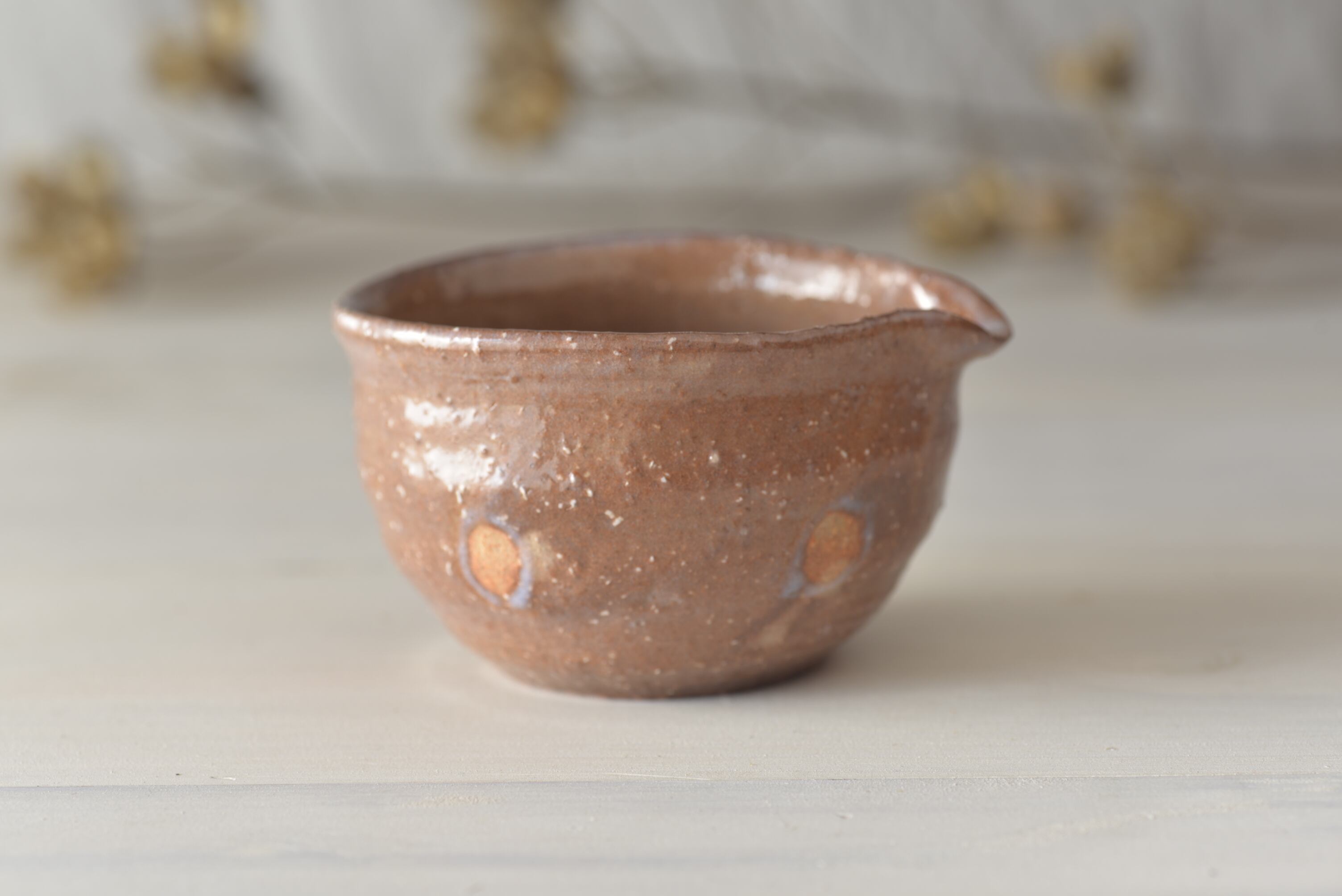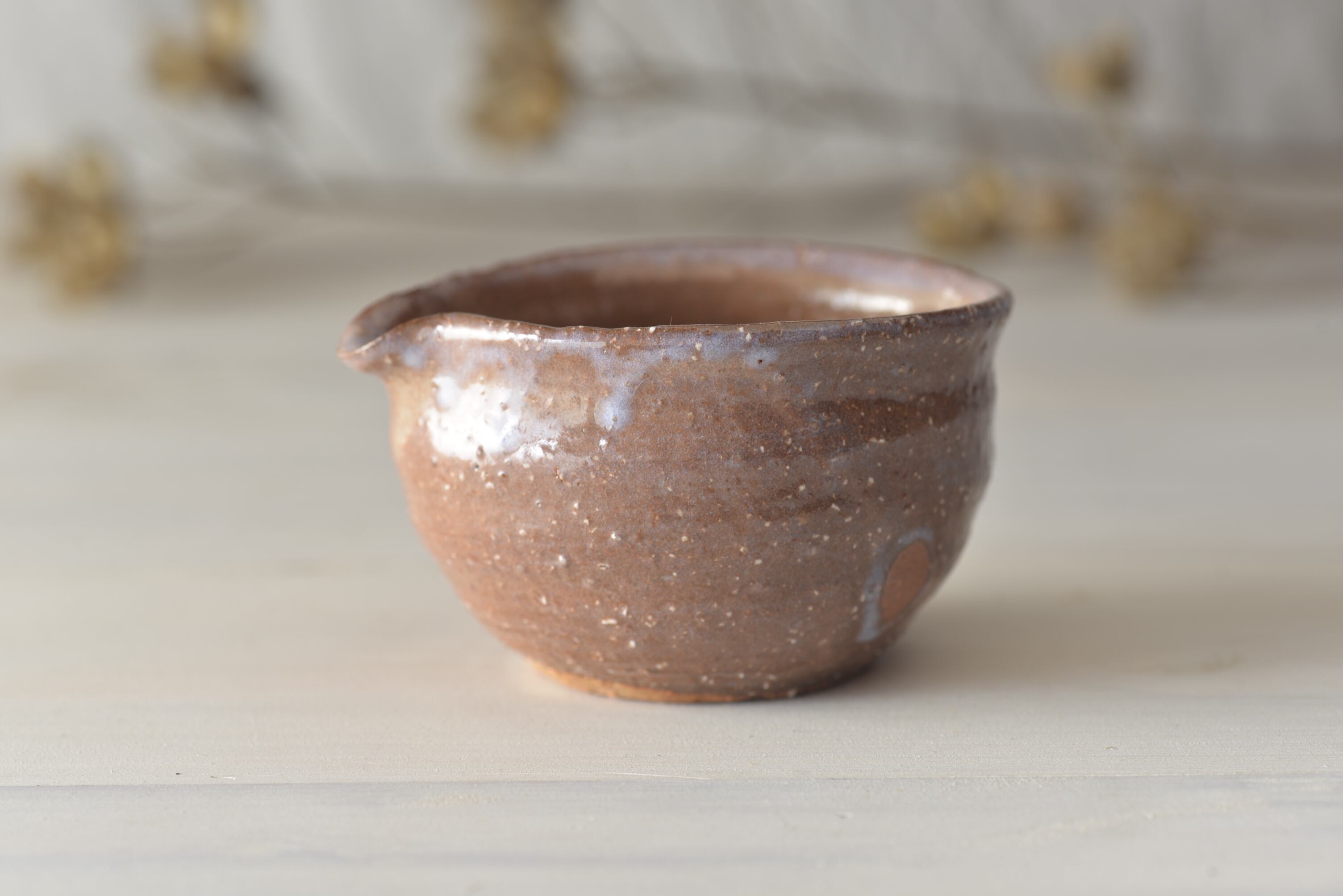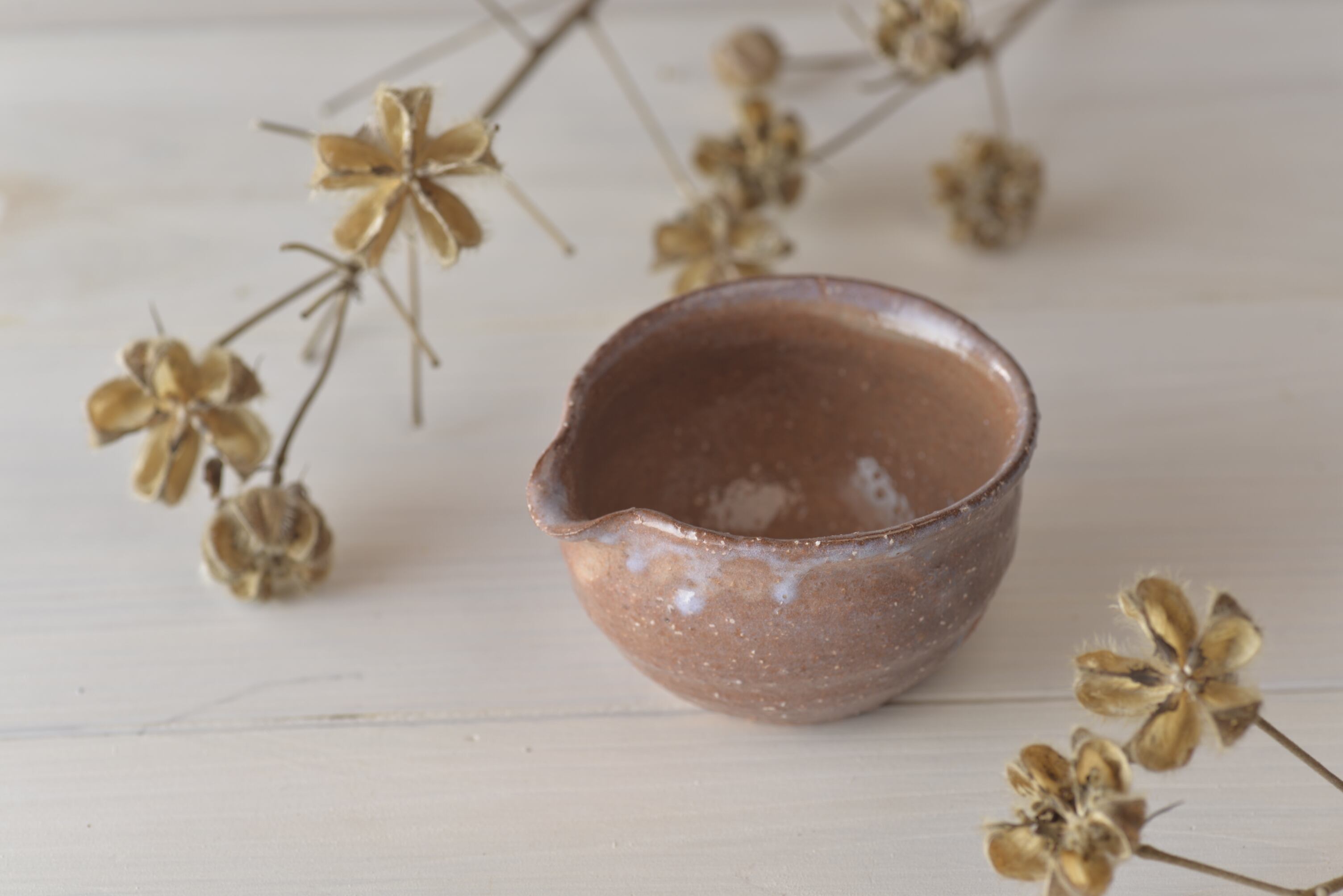 結果、柔らかく吸水性の高いやきものとなり、器にお茶が徐々にしみて、色あいが少しずつ変化していきます。これを「萩の七化け」と呼び、お茶の世界ではこれが器を楽しむポイントのひとつでもあります。