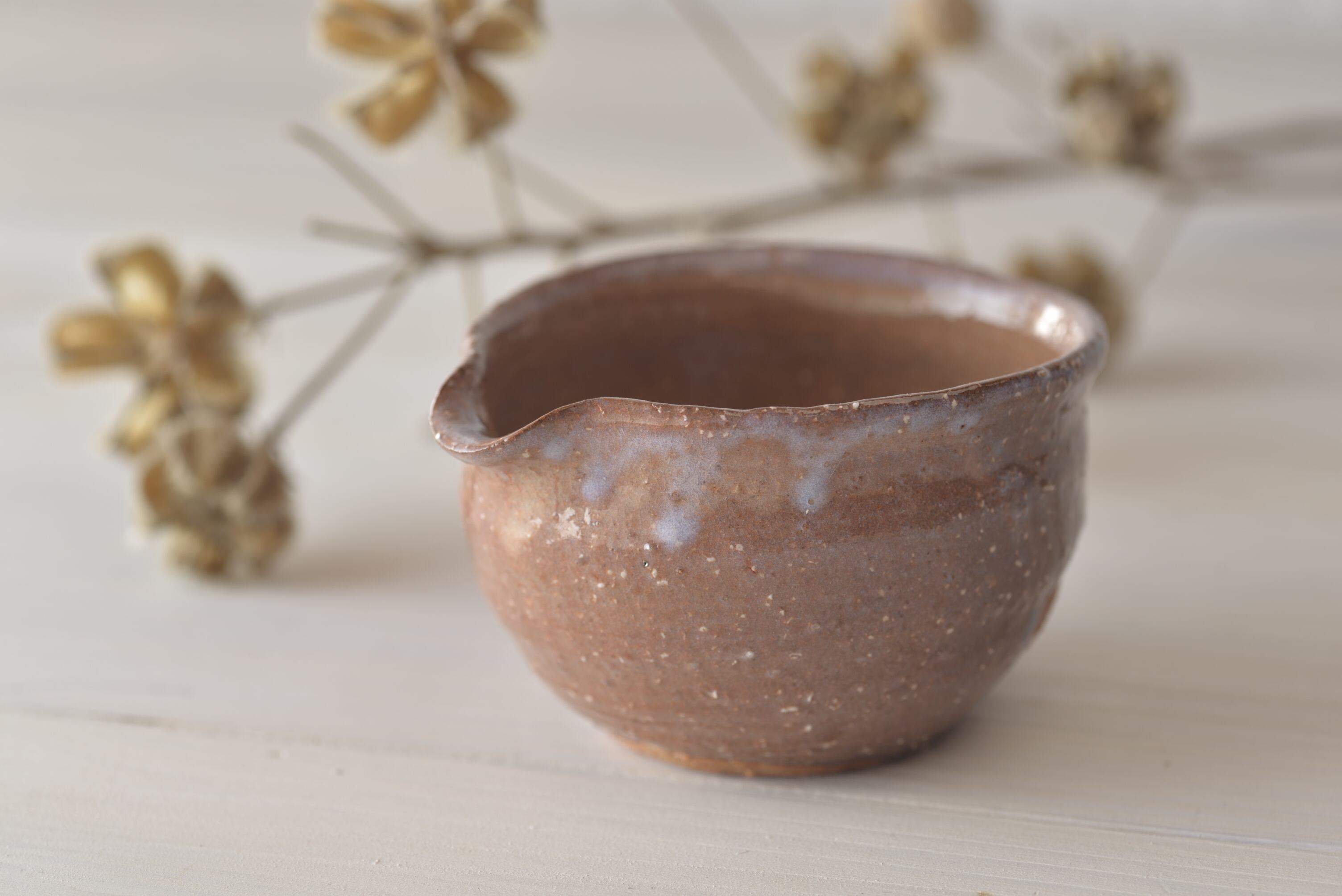 お茶の世界で萩焼は、そのざんぐりとした土味が高く評価されています。このやわらかく温かみのある土味を残すため、萩焼はあえて強く焼き締めないのが特徴です。